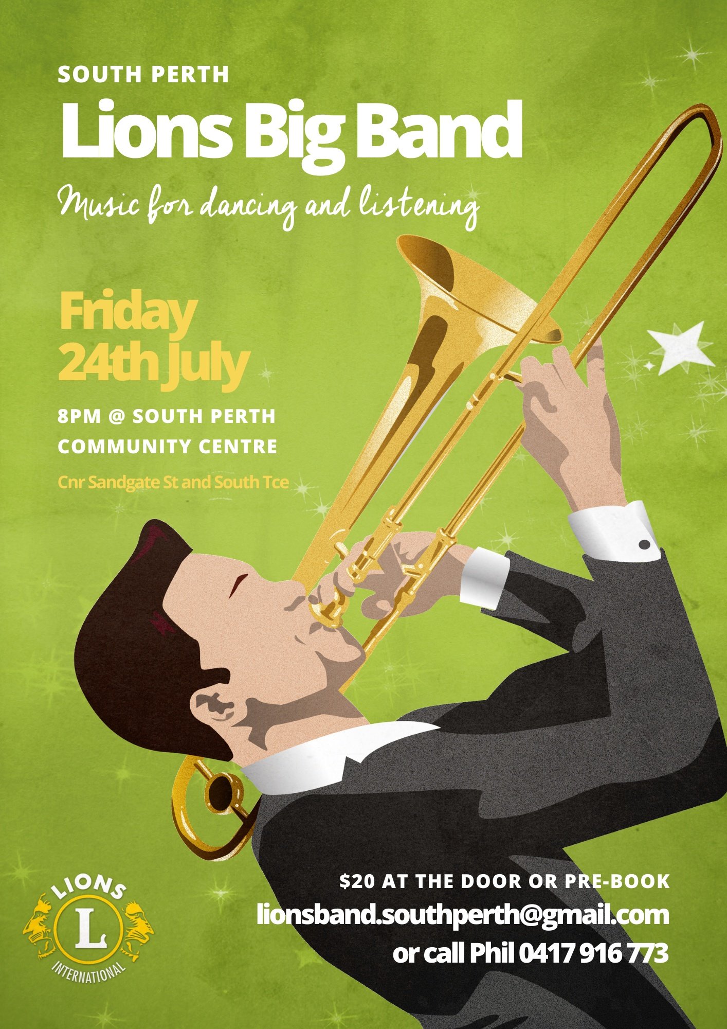 Yay, it’s time to kick up your heels and shake your tail feathers! Come and join the South Perth Lions Big Band on Friday 24th July. Listen and dance to the magical sound of the full big band with our great singers!